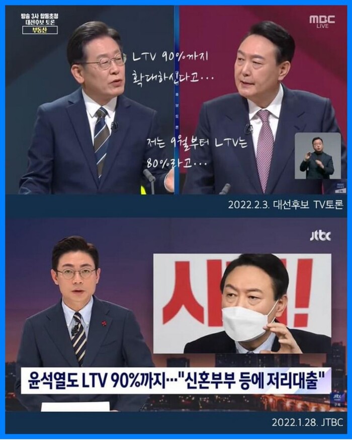 이 후보는 이에 "정책을 발표할 때 LTV를 80%로 할지, 90%로 할건지 중요한데, 아무 설명 없이 80%를 주장하다가 갑자기 90%로 바꾸면서"라고 지적했다. 윤 후보는 "초기부터 80%를 유지하고 있다" 고 반박했다. 그리고 국민의힘 에서는 JTBC기사로 90% 완화예정이라 보도했지만, 90% 공약한 적이 없다고 했다. 하지만 선대위에서는 90%를 이야기 했다.