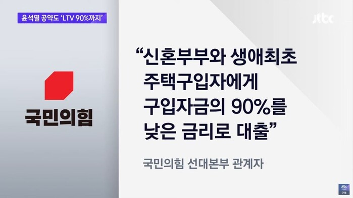 | ▲[단독] 윤석열도 LTV 90%까지…"신혼부부 등에 저리대출" / JTBC 뉴스룸 (JTBC 유튜뷰 캡쳐) |