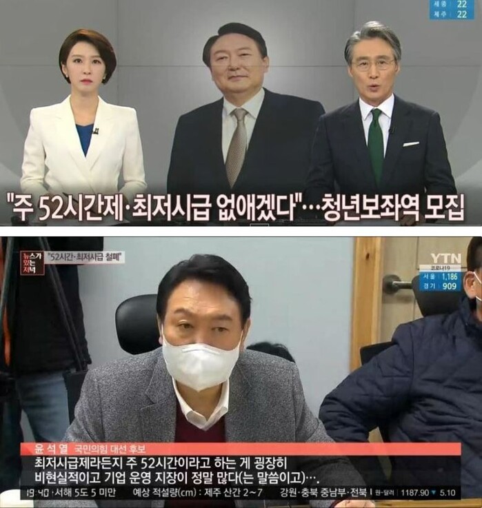 윤 후보는 "정확하게 알고 토론회에 나와야 한다" 며 "저는 최저임금제 폐지를 얘기해본 적도 없고, 주52시간제 폐지도 얘기한 적이 없다" 라고 했다.