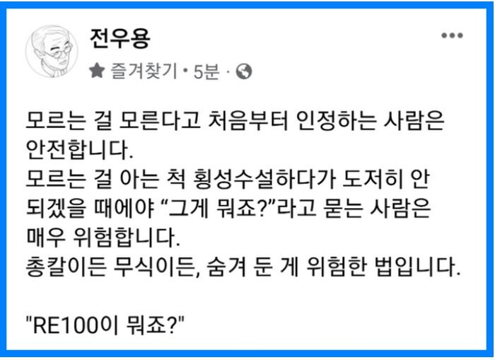 9.'RE100' 재생에너지 사용목표 용어를 모르는 것보다 "석탄" 발언이 더 충격.