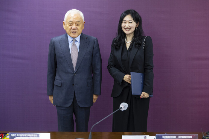 | ▲김한길 통합위원장과 특위위원장에 임명된 이우영 서울대 로스쿨 교수 (사진=연합뉴스) |