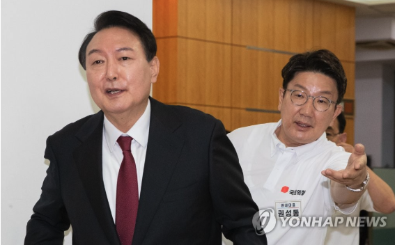 | ▲ 국민의힘 권성동 원내대표가 5일 서울 여의도 국회에서 열린 의원총회에 참석해 착석한 가운데 김용태 비상대책위원장이 입장하고 있다. 2025.6.5 (사진=연합뉴스) |