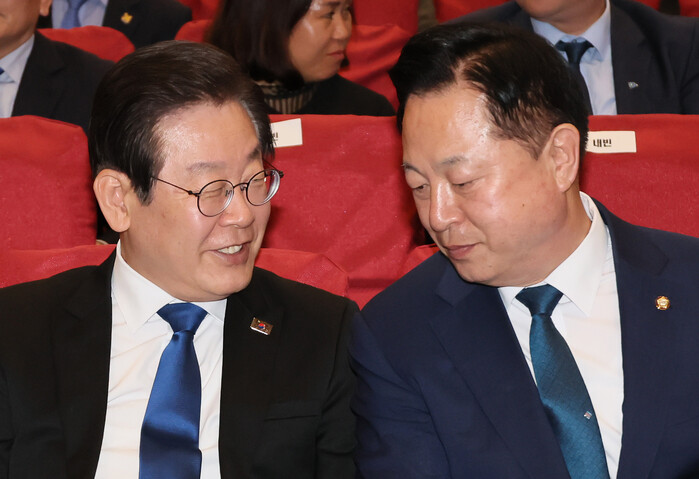 | ▲김두관의원과 인사하는 이재명 대표 (사진=연합뉴스) |