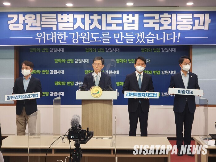 | ▲ 더불어민주당 이광재 강원도지사. 기자회견 (강원특별자치도법, 이광재법 통과) |