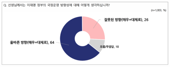 국정운영 방향 '올바른 방향' 64% vs '잘못된 방향'26%