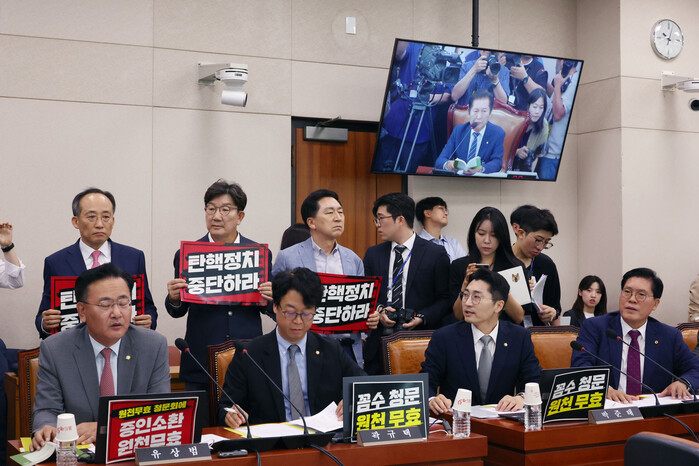 채상병 순직 1주기인 이날 열리는 청문회는 더불어민주당 등 야당이 주도해서 열리게 됐다. 청문회 자체가 성립될 수 없다는 국민의힘은 회의에 참여, 의사진행발언을 통해 부당함을 외치고 있다.