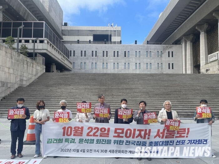 4일, 세종문화회관 앞에서, 윤석열 퇴진, 김건희 특검을 요구하는 촛불집회를 주도하는 촛불행동은 대국민 기자회견을 가졌다.