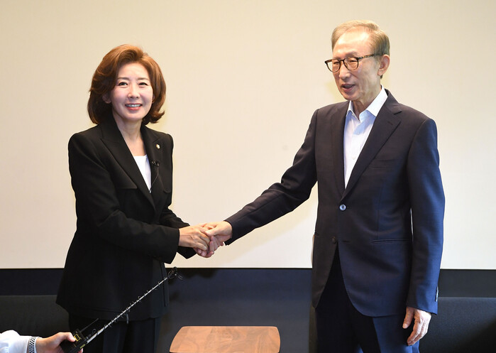 이명박 전 대통령이 국민의힘 나경원 대표 후보와 29일 만나 "당정이 힘을 모아야 한다"며 "여당 같은 야당이 있는데 힘이 분열되면 안 된다"고 당부했다 알려졌다.