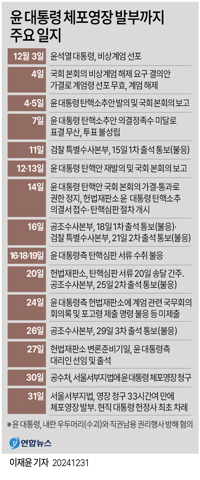 | ▲ 윤석열 체포영장 발부까지 주요 일지 (자료=연합뉴스) |