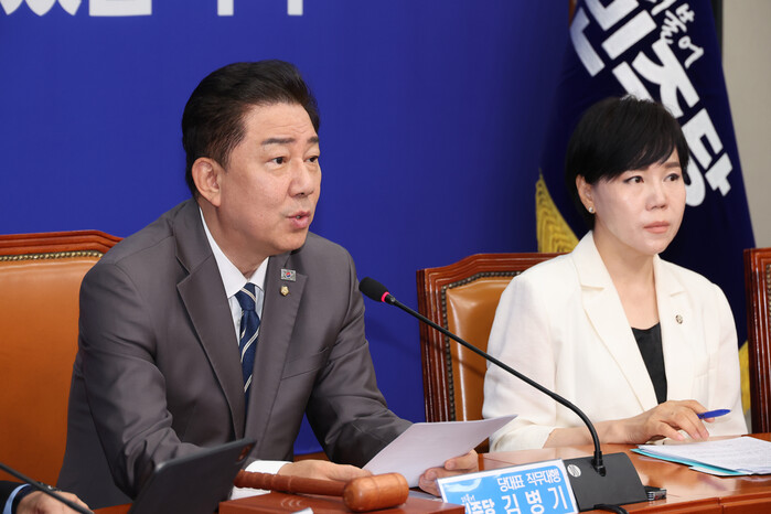 | ▲ 더불어민주당 김병기 당대표 직무대행 겸 원내대표가 서울 여의도 국회에서 열린 최고위원회의에서 발언하고 있다. 2025.7.7 (사진=연합뉴스) |