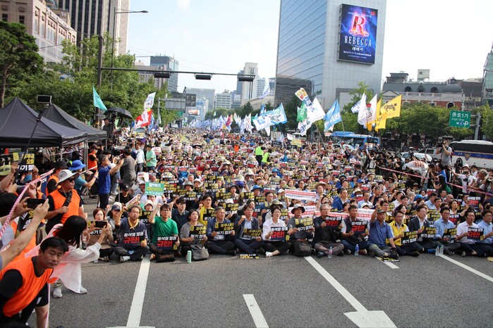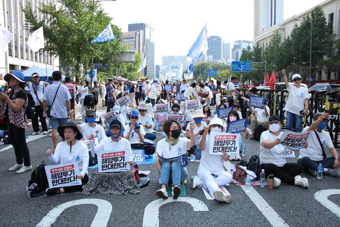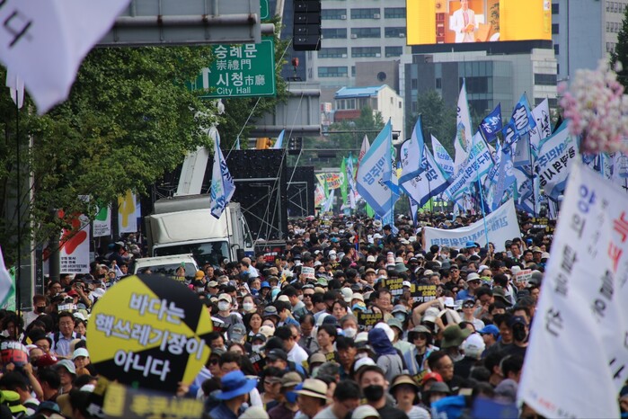 이날 집회는 야 4당과 시민사회단체 '일본 방사성 오염수 해양투기 저지 행동' 공동 주최로 주최 측은 집회 장소인 서울 중구 한국프레스센터 앞에 총 5만명이 모였다고 주장했다.
