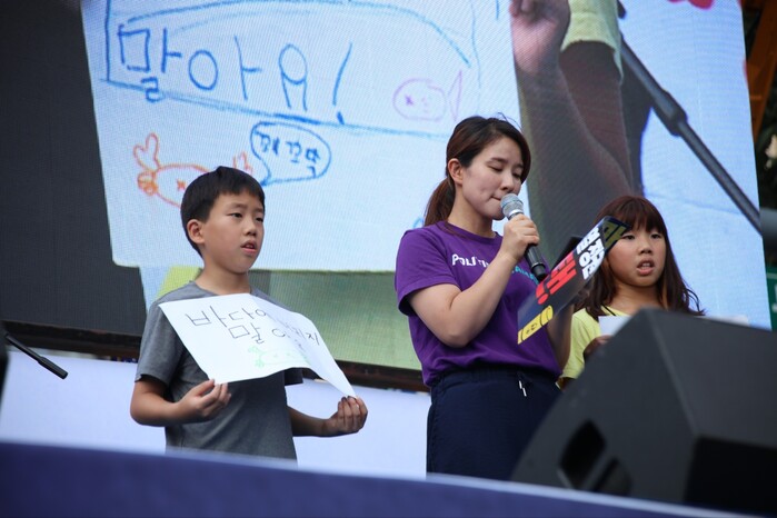 | ▲ 무대에 오른 시민과 초등학생(사진=시사타파뉴스 이만우) |
