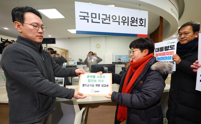 참여연대는 “청탁금지법에 따라 윤 대통령은 3년 이하의 징역이나 3000만원 이하의 벌금에 해당하는 형사처벌을 받거나 해당 금품 가액의 2배 이상 5배 이하에 달하는 과태료를 부과해야 한다”고 주장했다.