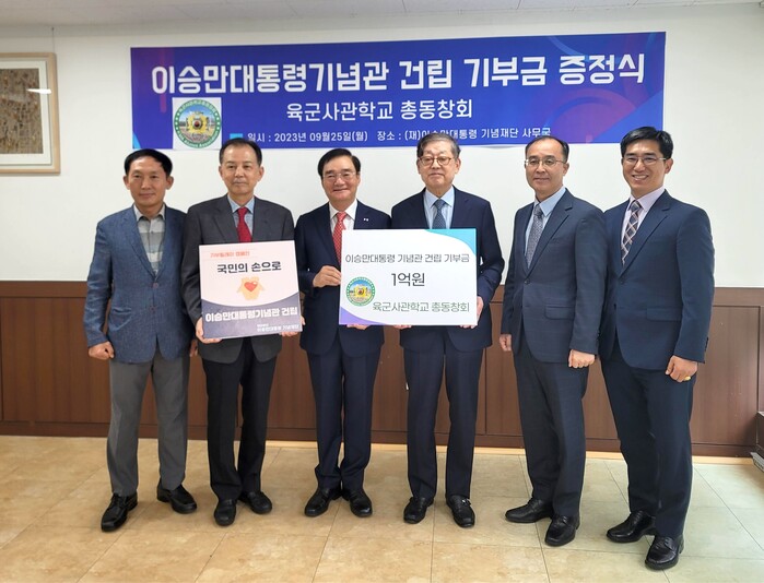 육군사관학교총동창회는 이승만기념관 건립기금 약 1억원을 이승만대통령기념재단에 전달했다고 밝혔다.
