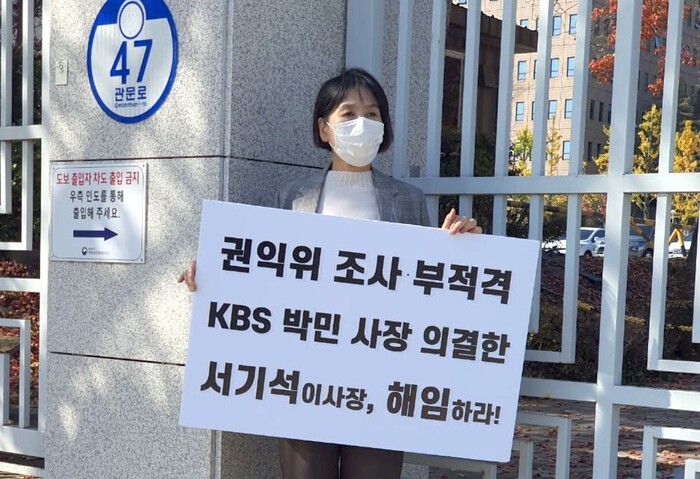 | ▲1인 시위중인 최민희 전 방통위원 내정자 (사진=연합뉴스) |