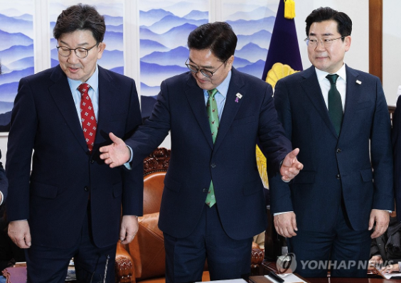 국회에 따르면 이날 회의엔 우 의장과 권성동 국민의힘 원내대표, 박찬대 더불어민주당 원내대표가 참석한다. 그동안 국정협의회에서 정부를 대표해왔던 최상목 대통령 권한대행 부총리 겸 기획재정부 장관은 민주당 반대로 불참한다.