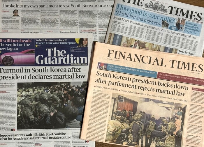 | ▲ 영국 신문 1면에 실린 한국 비상계엄 사태 (사진=연합뉴스) |