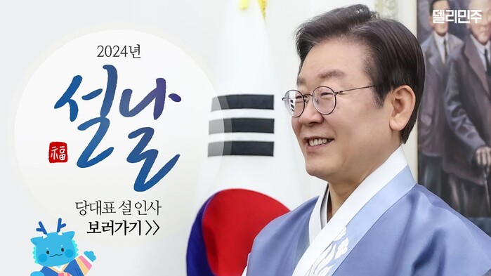 | ▲델리민주에 올라온 이재명 대표 설 인사 (화면 캡쳐=유튜브) |