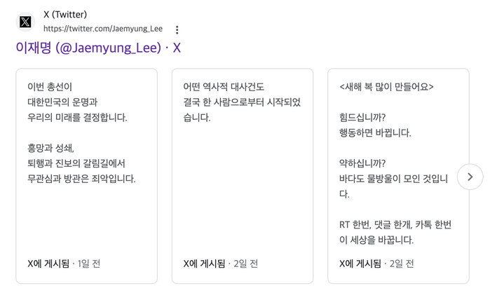 | ▲이재명 대표 트윗 모음 (화면 캡쳐=구글) |