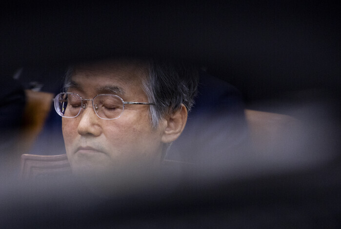 | ▲ 조희대 대법원장이 13일 국회에서 열린 법제사법위원회 국정감사에 출석해 여야 의원들의 설전을 지켜보다 눈을 감고 있다. 2025.10.13 (사진=연합뉴스) |