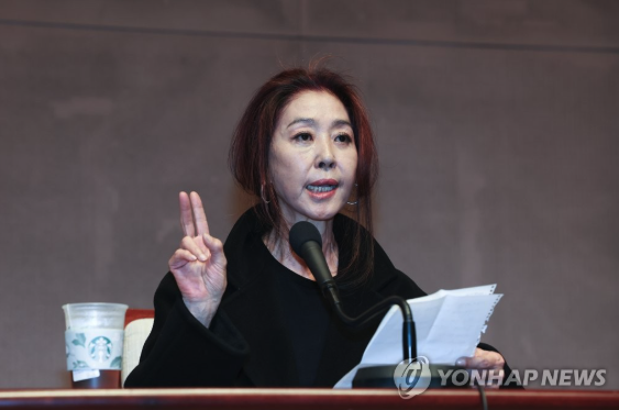 | ▲ 배우 김부선이 28일 오후 서울 중구 프레스센터에서 열린 더불어민주당 이재명 대선후보 관련 기자회견에서 입장 발표를 하고 있다. 2022.2.28 (사진=연합뉴스) |