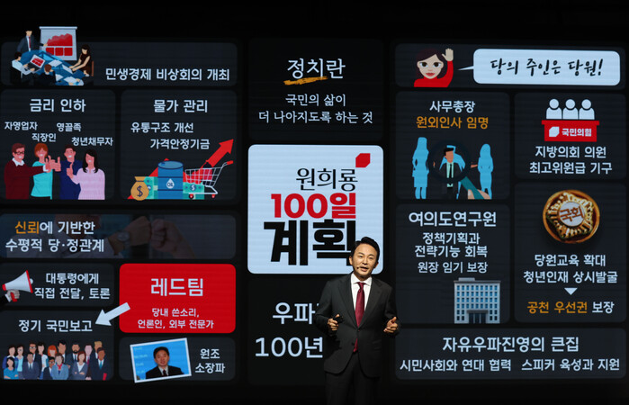 이 밖에도 △당 외연 확장 △원외 후원금 제도 △여의도 연구원 재편 △보수정책전문가 생태계 구현 △당내 성과 보상 체계 구현 △정책 초안자에 대한 정책호명제 등을 실시하겠다고 했다.