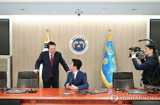 | ▲ KBS' 특별대담 대통령실을 가다' 녹화 후 박장범 KBS사장과 윤석열 대통령 (사진=연합뉴스) |