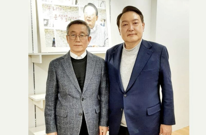 | ▲정운현 전 국무총리 비서실장과 윤석열 당시 대선 후보 (사진=연합뉴스) |