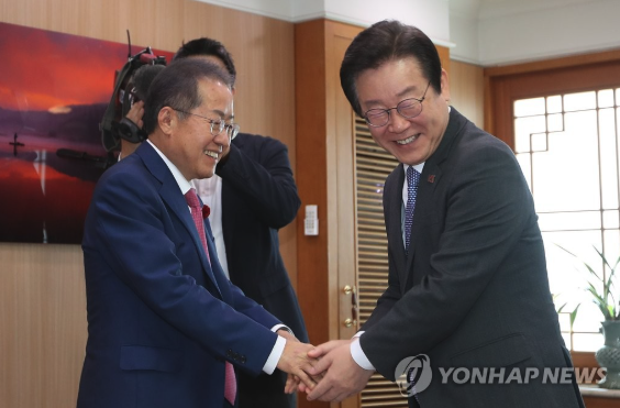 | ▲ 홍준표 전 대구시장과 이재명 후보 (사진=연합뉴스) |
