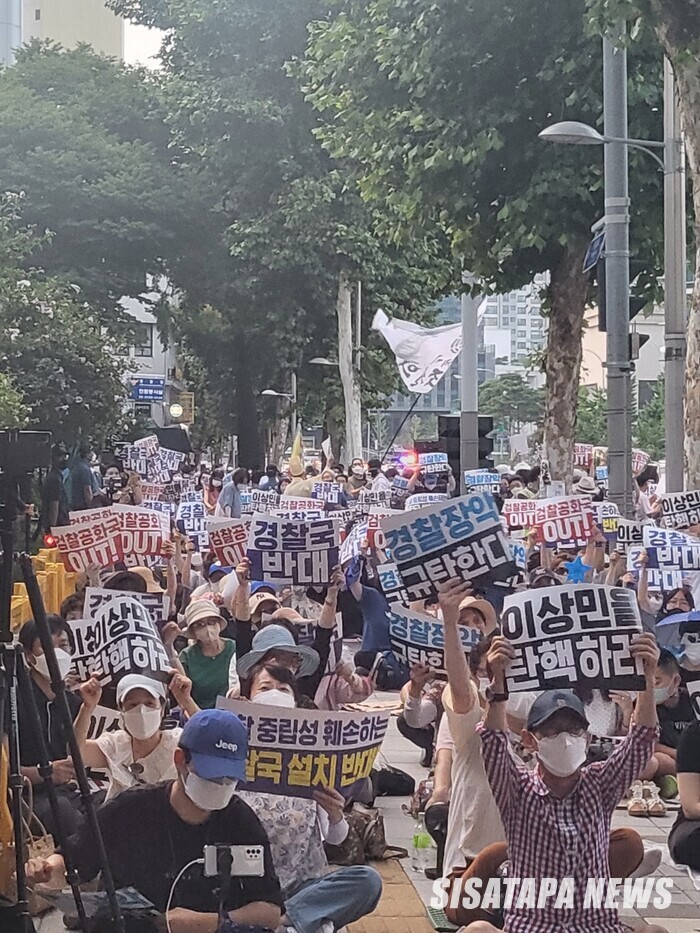 35도를 웃도는 무더위에도 2000여명의 시민들은 윤석열 정부의 경찰국 설치를 반대하는 집회에 속속 모여들었고, 서대문 역 끝, 1차선 도로앞까지 가득메우며, 경찰청 일대 행진으로 집회를 마무리 했다.