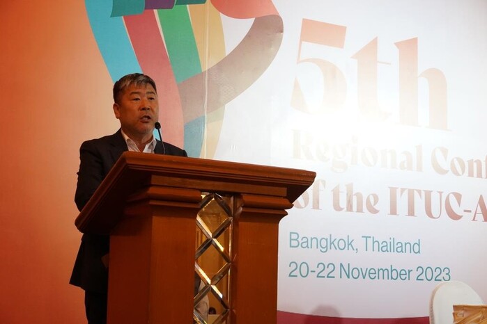 | ▲국제노총 아시아태평양 지부 총회에 참석한 한국노총 김동명 위원장 (사진=연합뉴스) |