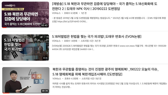 | ▲ 도태우 변호사가 출연해 광주 관련 발언을 한 유튜브 영상 (화면 캡쳐=SSTPN) |
