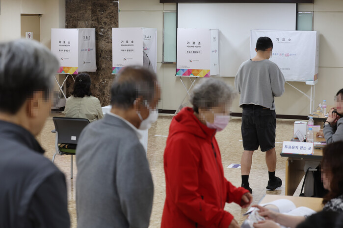 유권자들은 1층에 설치된 투표소에서 선거 사무원의 안내에 따라 투표용지를 받은 뒤 기표소에 들어가 지지 후보를 선택했다.