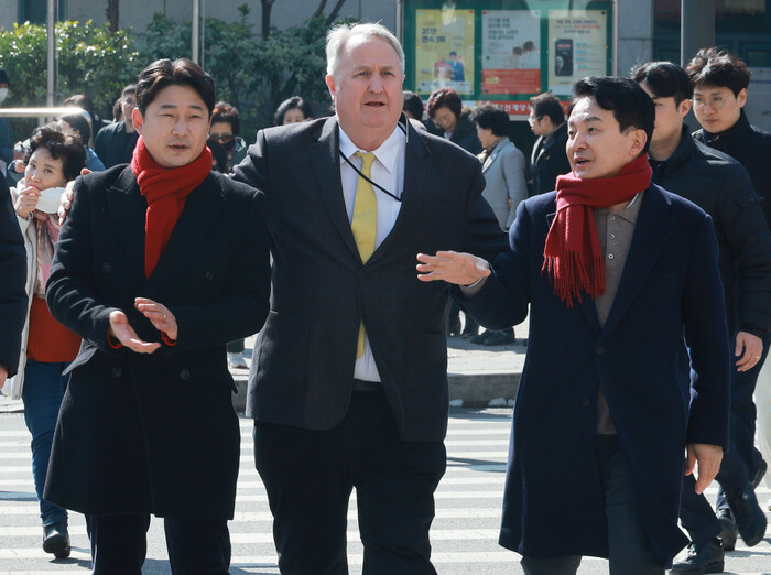 | ▲원희룡 지원유세 나선 이천수 인요한 (사진=연합뉴스) |