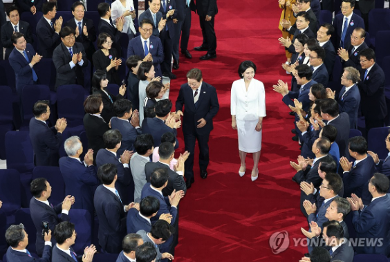 | ▲ 서울 여의도 국회에서 열린 제21대 대통령 취임선서식, 이재명 대통령 부부 (사진=연합뉴스) |