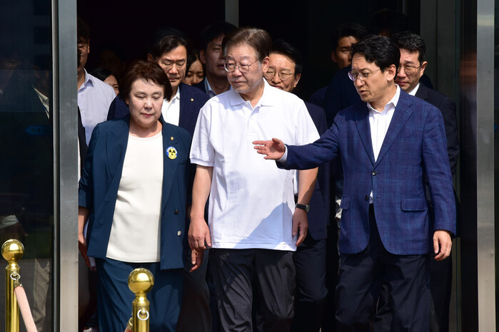 | ▲농성장으로 향하는 이재명 대표 (사진=연합뉴스) |
