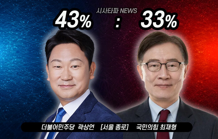 조선일보·TV조선이 케이스탯리서치에 의뢰해 지난 22~24일 서울 종로에서 진행한 여론조사결과 정부 견제론에 힘을 받으며 곽상언 후보가 오차 범위 밖에서 앞선 모습을 보여주고 있다.