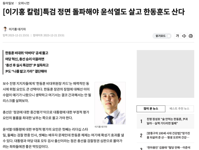 | ▲동아일보 사설 화면 |