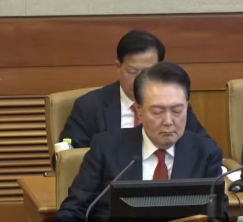 | ▲ 6일 탄핵심판 6차변론에 출석한 윤석열 (출처=헌법재판소) |