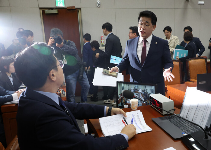 | ▲운영위원장에게 항의하는 여당 간사 (사진=연합뉴스) |