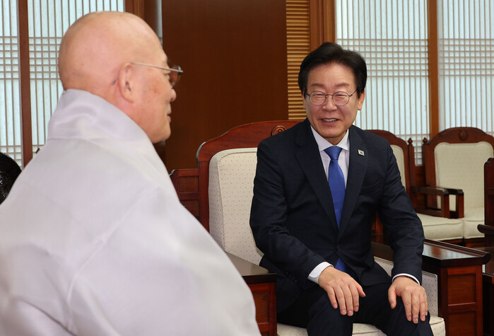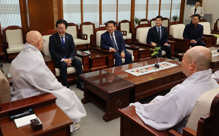 이재명 더불어민주당 대표는 서울 종로구 한국불교역사문화기념관에서 조계종 총무원장 진우스님을 예방하며 "종교계 어른들이 나서주시는 게 충돌 양상을 완화하는 데 도움이 될 것 같다"고 말했다.