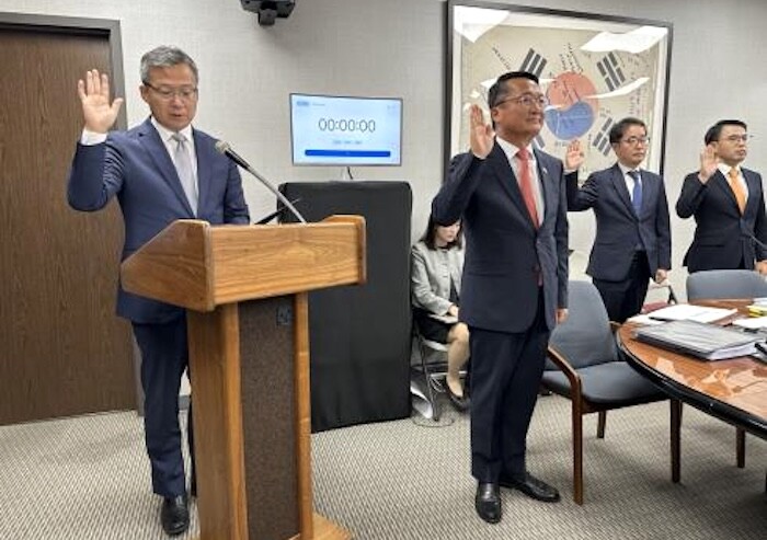 | ▲김영완 LA총영사와 임정택 샌프란시스코총영사 국감 선서모습 (사진=연합뉴스) |