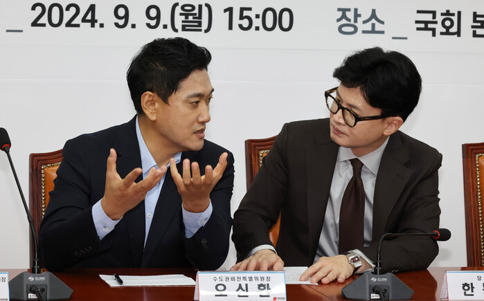오 위원장은 "한동훈 대표가 얘기한 인적 쇄신과 관련해서도 그것이 '김건희 여사 라인'이든 그렇지 않든 대통령실의 인적 쇄신이 반드시 필요하다고 판단한다"며 "그게 수도권의 민심"이라고 지적했다.