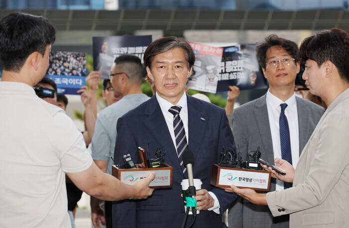 여유로운 표정으로 취재진 앞에 선 조 대표는 "검찰은 문 전 대통령을 목표로 3년째 수사하고 있다"며 "이게 맞는 일인가 하는 생각이 든다"고 말했다.