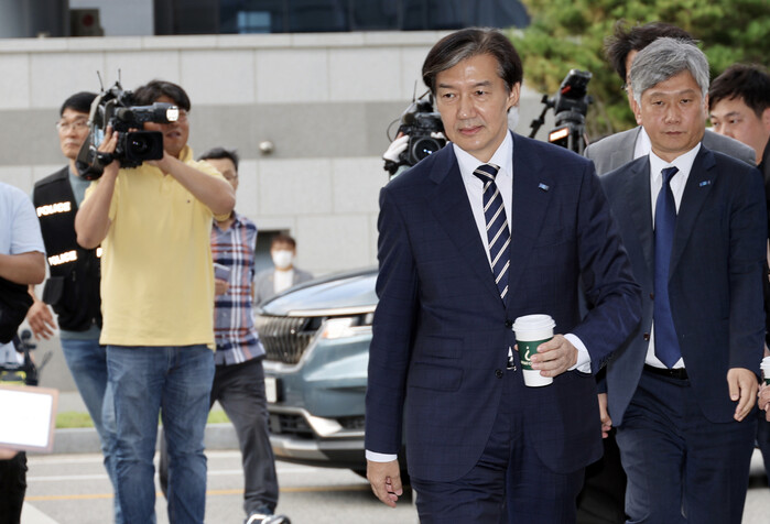 | ▲물음표 새겨진 커피잔 들고 검찰 출석하는 조국 대표 (사진=연합뉴스) |