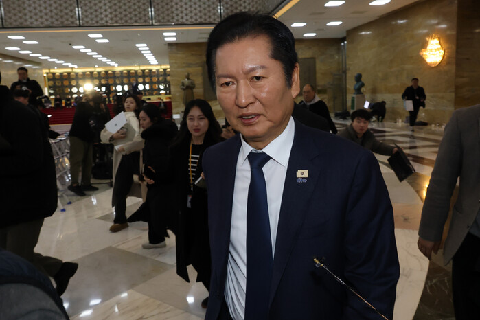 | ▲ 더불어민주당 정청래 대표가 10일 국회에서 조국혁신당과의 합당 논의를 주제로 열린 비공개 의원총회 도중 외부 일정 참석을 위해 이동하고 있다. 2026.2.10 (사진=연합뉴스) |