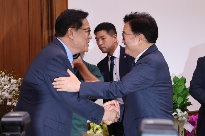 | ▲정진석 대통령실 비서실장이 우원식 신임 국회의장을 찾았다 (사진=연합뉴스) |
