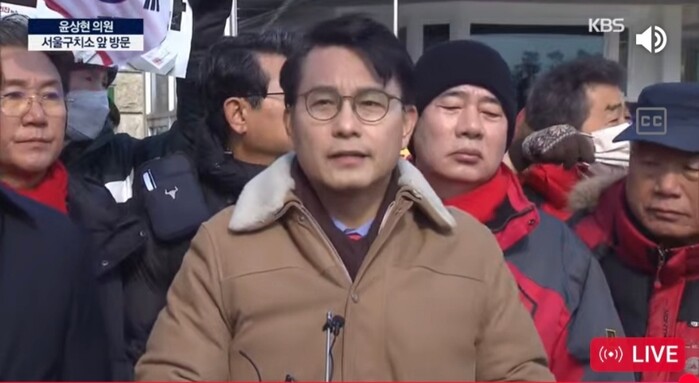 그는 이어 "검찰은 대통령을 석방해서 적어도 헌재 심판에 있어서 대통령의 방어권을 보장해 줘야 된다" 며 구치소 문 앞에서 성조기를 흔들며 부정선거를 주장하는 강성지지자들과 함께 즉각 석방을 주장했다.