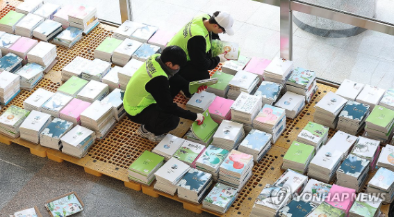 | ▲ 모 학교의 신학기 교과서 분류작업 (사진=연합뉴스) |