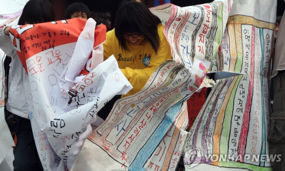 | ▲ 무한경쟁교육과 일제고사에 반대하는 청소년 모임 2008.10.15 (사진=연합뉴스) |